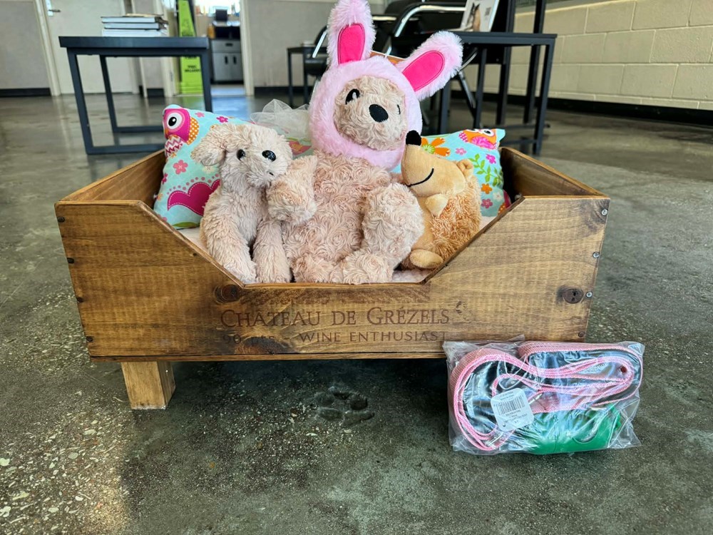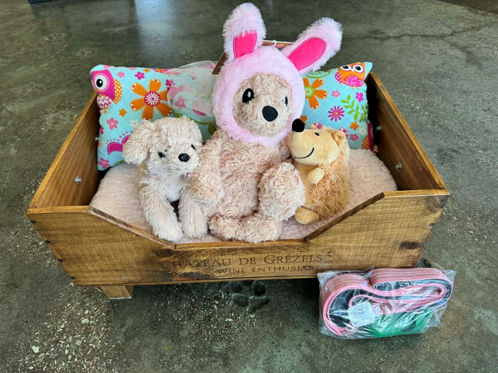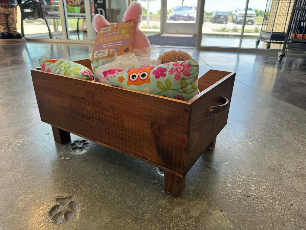 Give your furry companion a cozy space with a story to tell! This custom-crafted pet bed, made from an authentic wine box, blends rustic charm with comfort, creating a one-of-a-kind lounging spot that’s as stylish as it is snug. Complete with soft bedding and adorable plush companions, this piece is perfect for pets who deserve a little extra love (and for owners who appreciate unique, handcrafted design). It’s not just a bed, it’s a statement piece that adds warmth and character to any home.