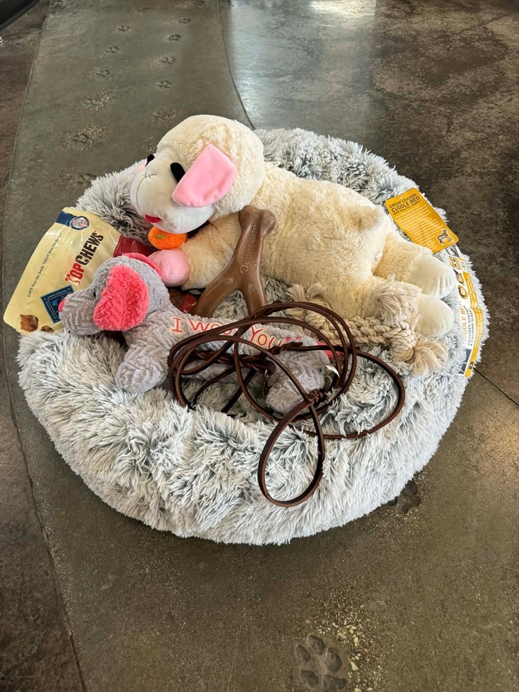 Give your pup the gift of ultimate comfort and everyday adventure with this thoughtfully curated bundle! At the center is a super plush Dream Chaser Cuddle Bed (Medium, up to 45 lbs) designed with deep, cozy sides that let your pet burrow, curl up, and drift into the sweetest naps imaginable. This package also includes two custom-made leather leashes, combining durability with timeless style—perfect for daily walks in comfort and class. To keep tails wagging, it comes complete with fun toys and tasty treats, making it the perfect mix of relaxation and play. Whether your pet loves to snuggle, explore, or both, this bundle delivers comfort, quality, and joy in one irresistible package.